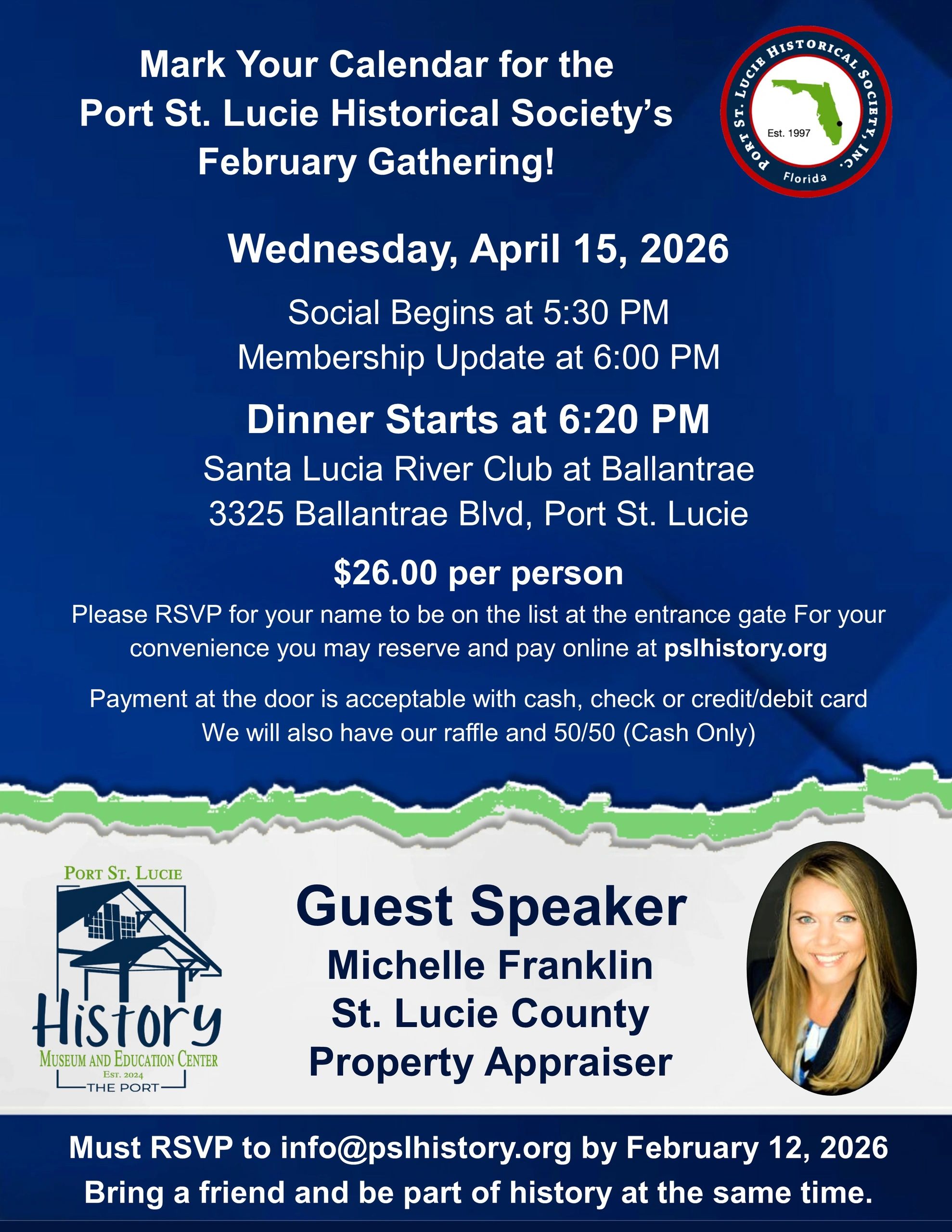 The Port St. Lucie Historical Society is a 501 (c) (3) Public Charity, NFP deductible to the extent allowed by law.