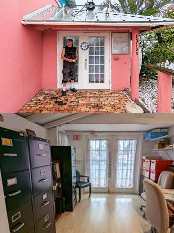 While waiting for the City to prepare our museum, the archiving office and a video studio moved into an attractive new site off the parking lot at the Shell Bazaar on U.S. 1. We previously had an interior room at the same location, but this made it much nicer for volunteers to help enter items into our database, similar to that used by libraries. The move is thanks to Vice Chair Dennis Grabhorn, shown below left, and his assistant Chris. The video studio was taken over later in the year to accommodate a new restaurant planned adjacent to the Shell Bazaar.