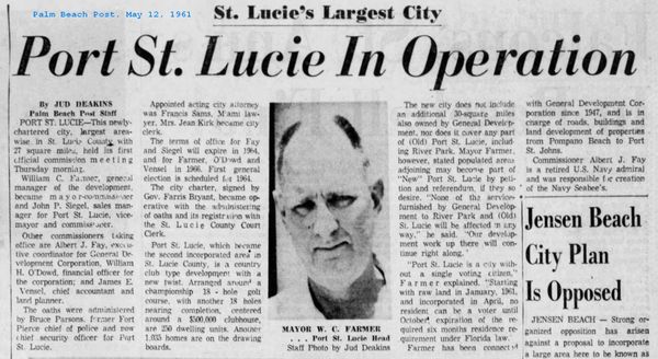 The unique evolution of the River Park sub-division was nothing short of remarkable. It was at first intended as the beginning of this new city to be named Port St. Lucie. However, as time progressed and circumstances prevailed, recognizing the differences between the vision of the developer and that of the River Park residents, the city was chartered to exclude River Park. To this day River Park abuts the northern border of Port St. Lucie in unincorporated St. Lucie County. While its residents, many of whom were and remain a vital part of the history of the City, are not within the boundaries of Port St. Lucie, they are a part of the fabric of the City.